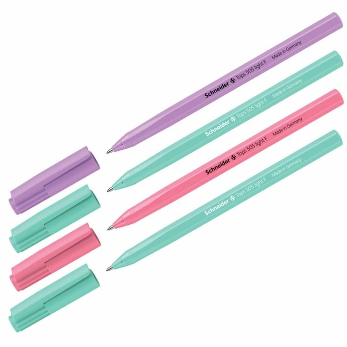 Ручки шариковые синие набор для школы 4 штук/ комплект ручек Schneider Tops 505 F Pastel, пастельные цвета корпуса, линия письма 0,8 мм канцелярия для офиса/сделано в Германии интересное: