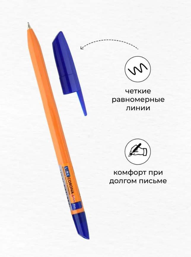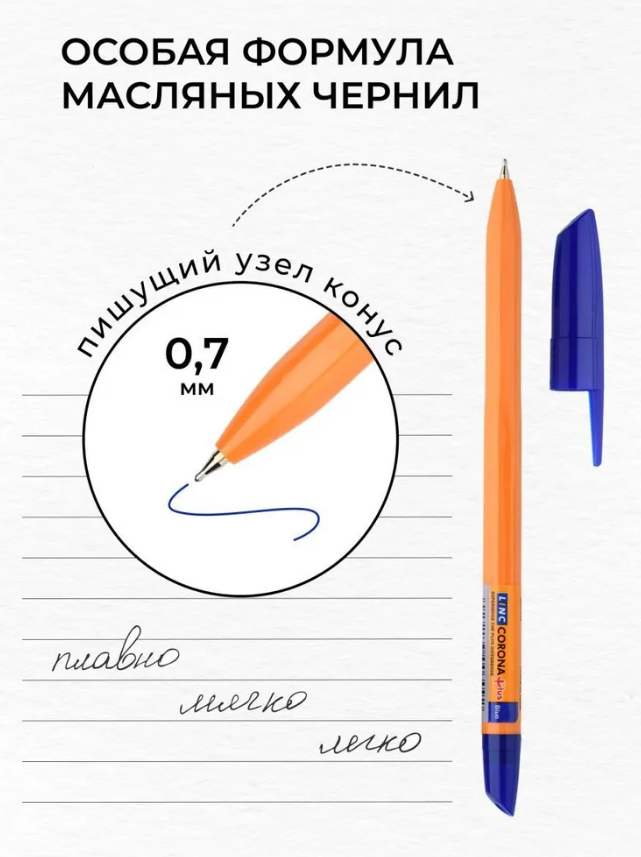 СохранитьНабор из 50 шт, Ручка шарик. Linc CORONA PLUS синий 0,7 мм оранж. кругл. корп. 3002N/Y/blue (109216) интересное: