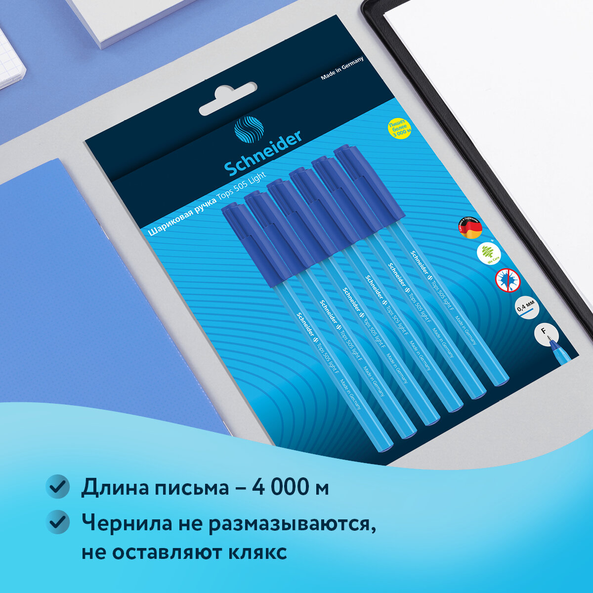 Ниже Вы можете прочитать отзывы на Набор шариковых ручек Schneider Tops 505 F Light 6 шт, синие, 0,8 мм, блистер 319656, ознакомится с подробными характеристиками, посмотреть интересные обзоры и фотографии на Набор шариковых ручек Schneider Tops 505 F Light 6 шт, синие, 0,8 мм, блистер 319656.