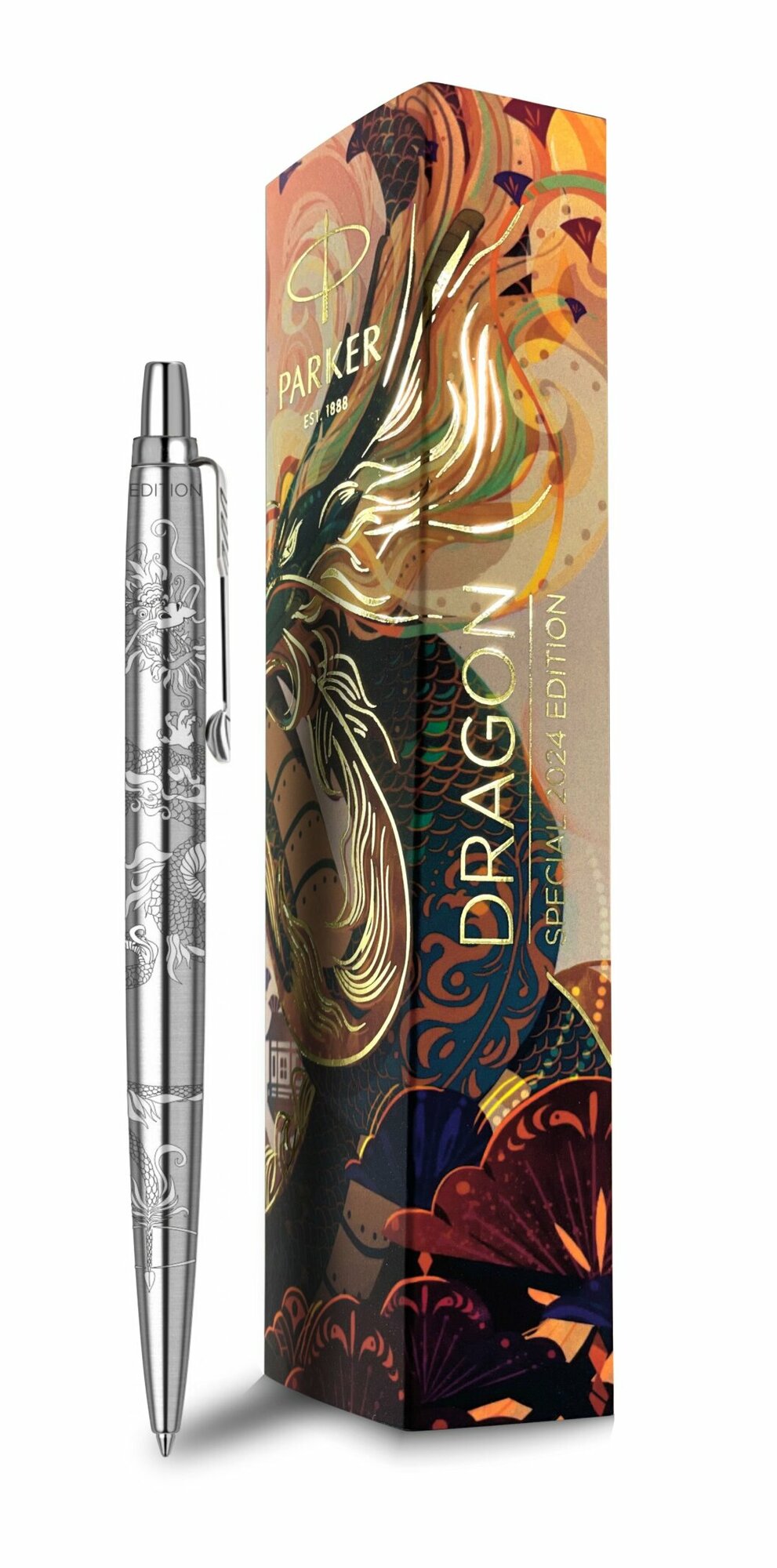 Шариковая ручка Parker Jotter Dragon Special Edition, цвет: St. Steel СT, стержень: Mblue в подарочной коробке интересное: