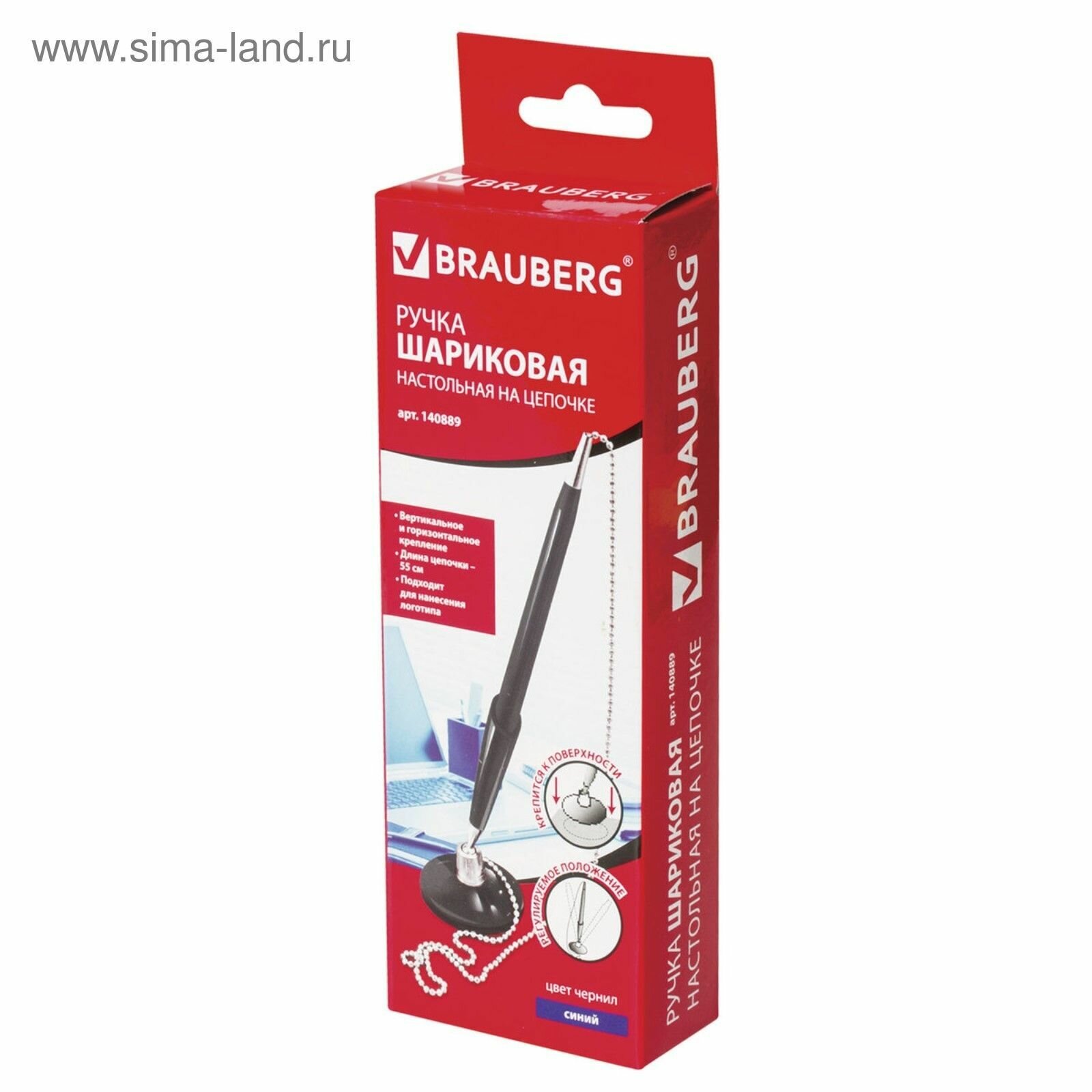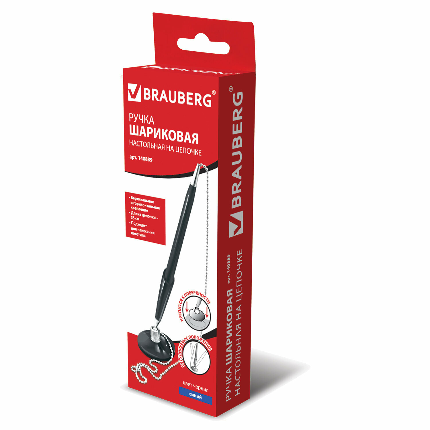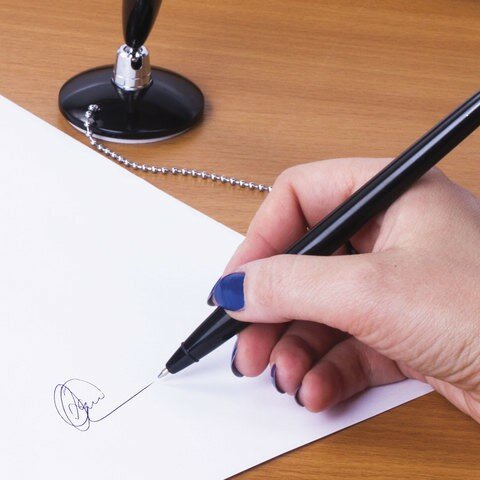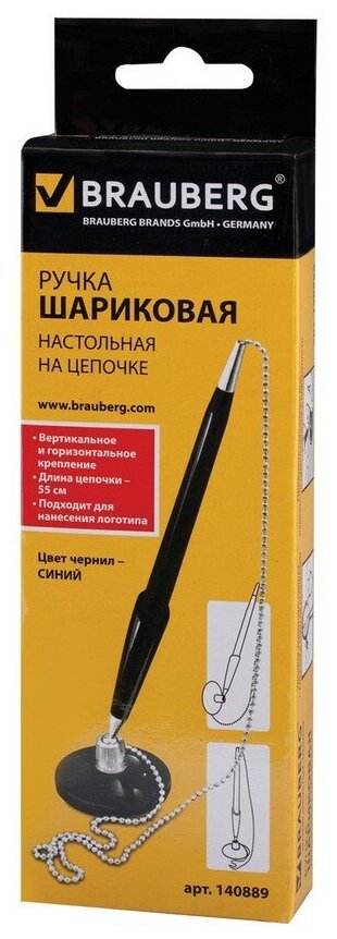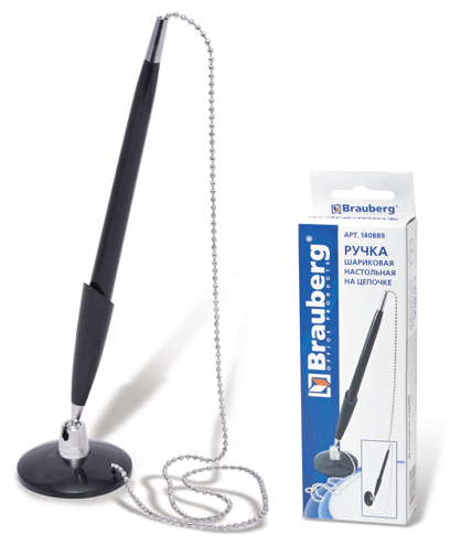 Ручка шариковая настольная BRAUBERG "Стенд-Пен Блэк1", синяя, цепочка, корпус черный, линия письма 0,5 мм, 140889 (цена за 1 ед. товара)