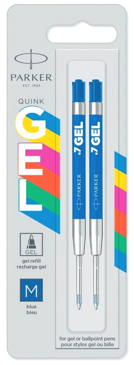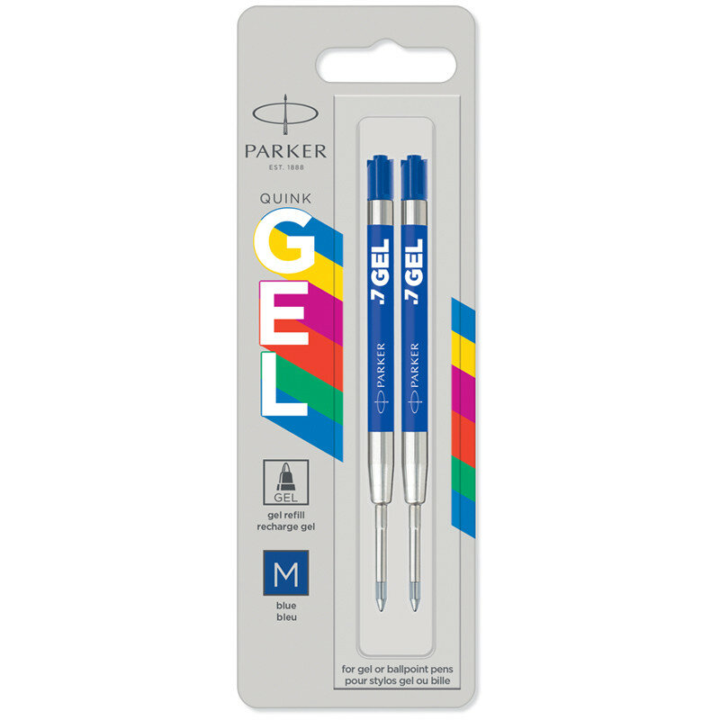 Гелевые стержени Parker Quink Gel, цвет Blue, толщина линии M (0.7), в блистере 2 шт.