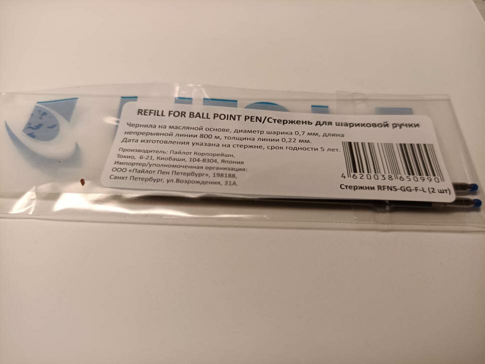 Стержень шариковый с ушками PILOT 98 мм, линия 0,22 мм, комплект 2 штуки, синий, узел 0,7 мм, RFNS-GG-F интересное: