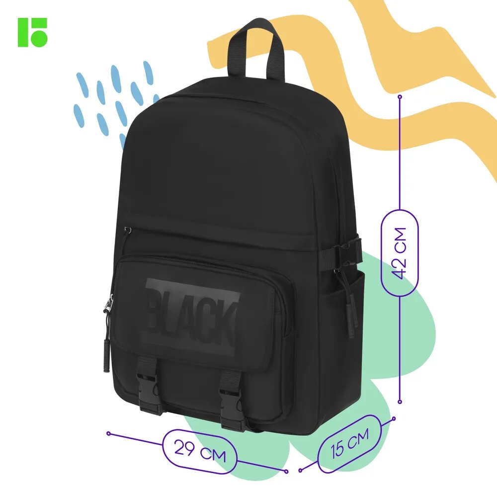 Рюкзак Berlingo "Tasty", Black Robusta, 40х28х15 см, 1 отделение, 7 карманов, уплотненная спинка (RU09157)