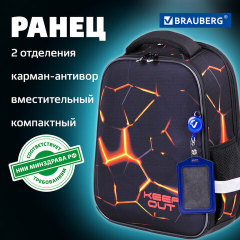 СохранитьРанец / рюкзак / портфель школьный для мальчика первоклассника Brauberg Fit начальной школы, 2 отделения, Keep out, 38х27х14 см, 270617 интересное: