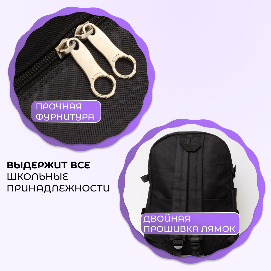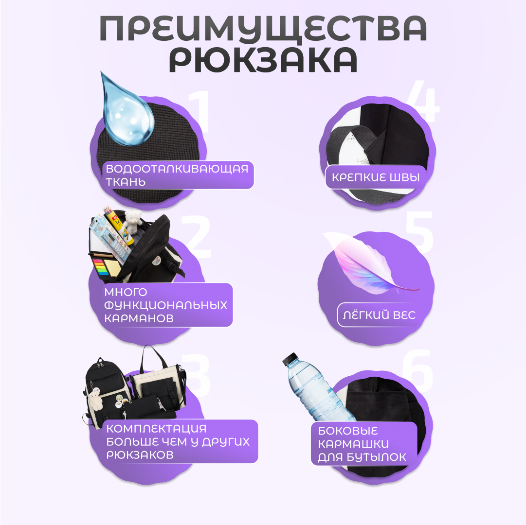 СохранитьРюкзак школьный Набор 9 в 1: Стильный и Модный, для Девочек и Мальчиков, идеально подходит для Школы, Туризма и Спорта, Повседневный. Черный интересное: