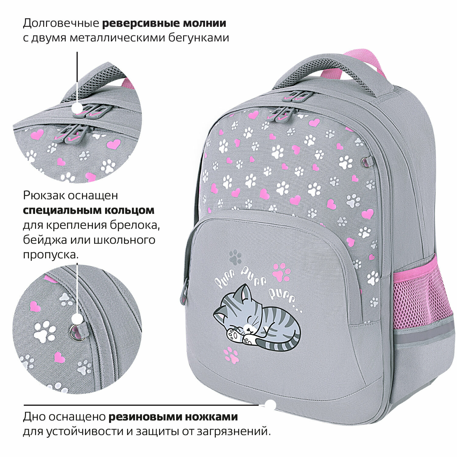 СохранитьРюкзак школьный для девочки, ранец для подростка спортивный, портфель детский в школу светящийся, 2 отделения, 3 кармана, Brauberg Sleepy cat, интересное: