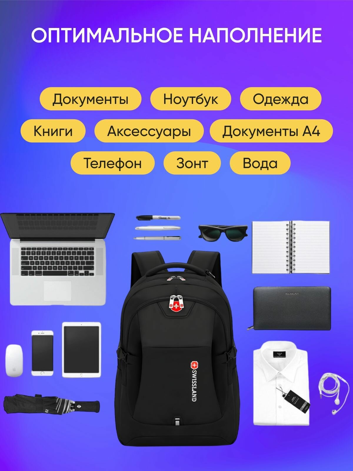 | Специальные отделения | карман для бутылки / карман для телефона / отделение для ноутбука / отделение для очков / отделения для ключей |