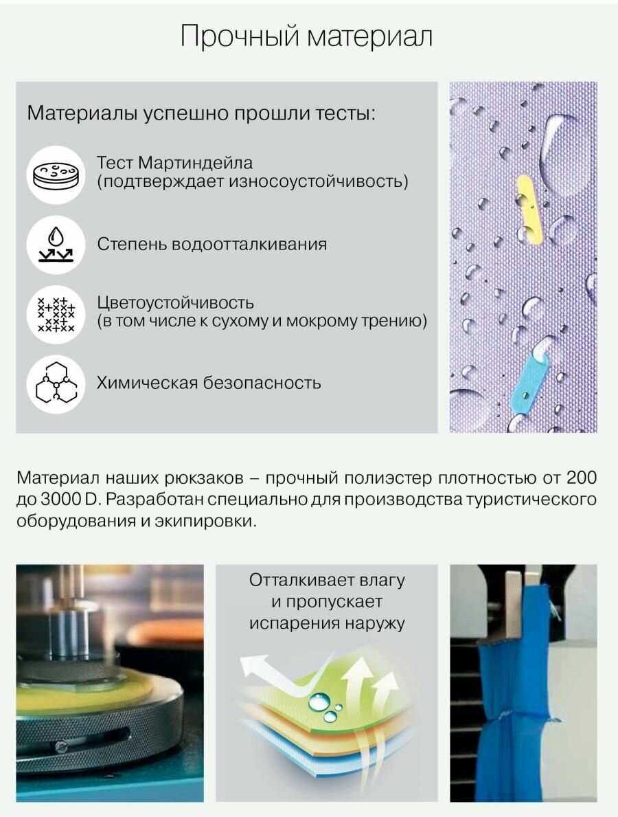 | Особенности | вентилируемая спинка / вентилируемые лямки / верхний клапан / водоотталкивающая пропитка / грудная стяжка / жесткое дно / ножки / ортопедический / разделитель в главном отделении / регулируемые лямки / ручка для переноски / с наполнением / светоотражающие элементы / эргономичная спинка |