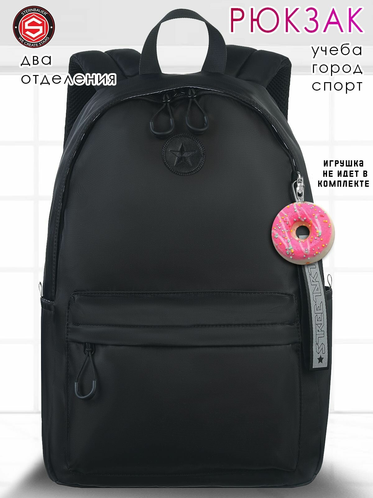 Купить STERNBAUER Ранец женский летний городской молодежный стильный вместительный/ Школьный рюкзак для девочки, девушки черный без принта/ Повседневный портфель для учебы прогулок спорта тренировок ноутбука