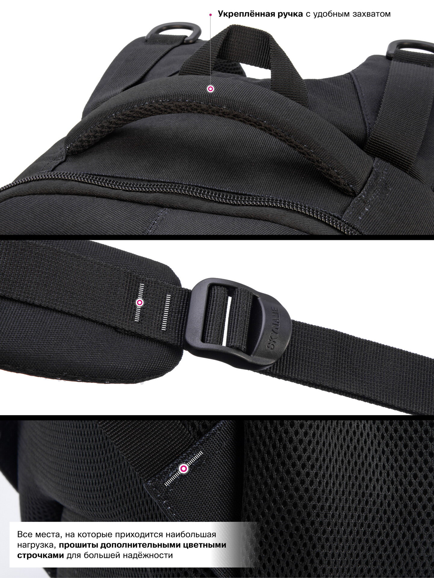 | Особенности | вентилируемая спинка / вентилируемые лямки / водоотталкивающая пропитка / грудная стяжка / жесткое дно / ножки / ортопедический / разделитель в главном отделении / разъем USB / регулируемые лямки / ручка для переноски / с наполнением / эргономичная спинка |