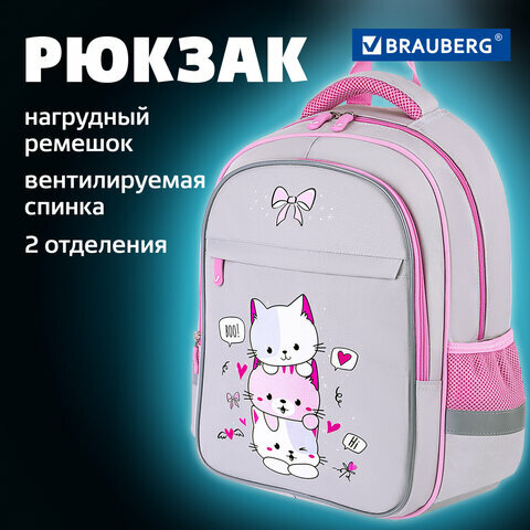 Купить Рюкзак / ранец / портфель школьный для девочек Brauberg Favour, 2 отделения, 3 кармана, Fluffy kittens, 40х29х15 см, 271417