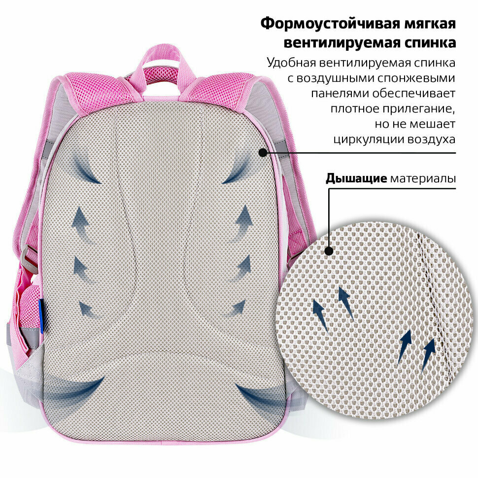 | Особенности | вентилируемая спинка / вентилируемые лямки / водоотталкивающая пропитка / ортопедический / разделитель в главном отделении / регулируемые лямки / ручка для переноски / светоотражающие элементы |