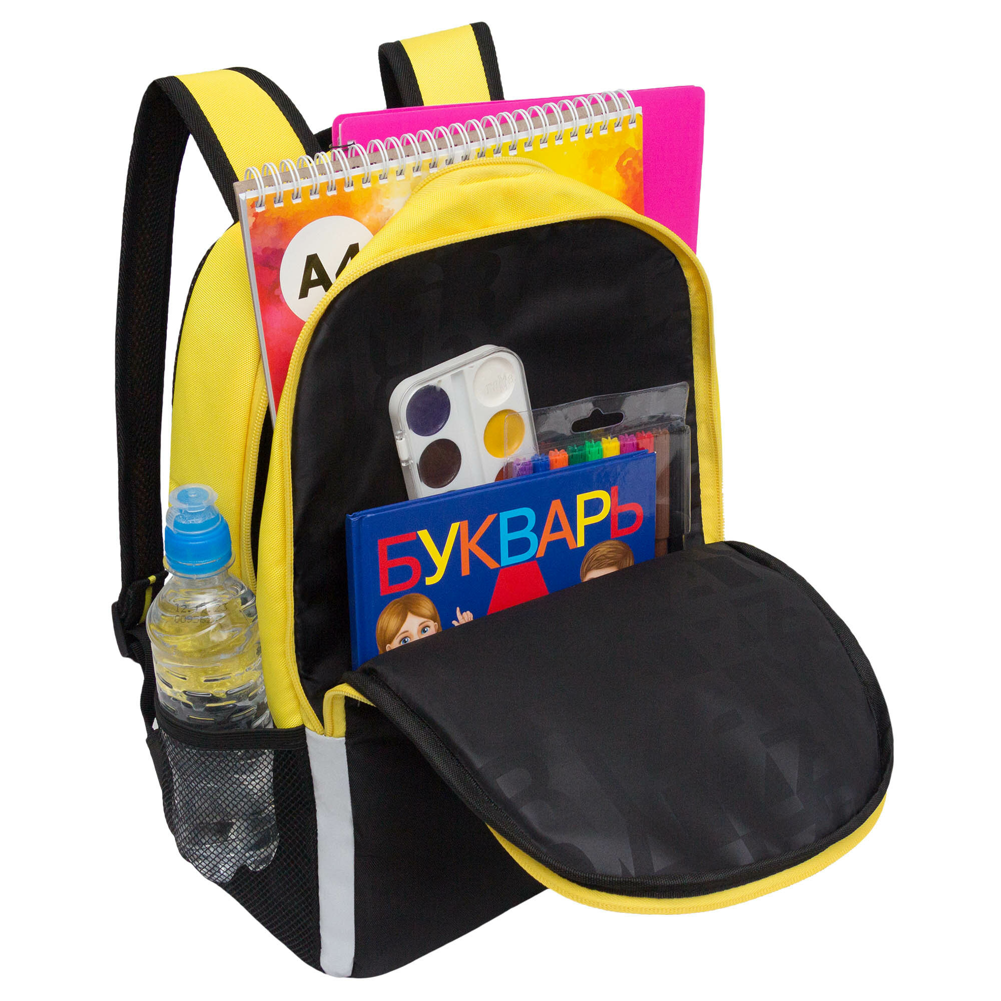 Купить Школьный рюкзак GRIZZLY RB-451-8 черный-желтый, 29х38х16