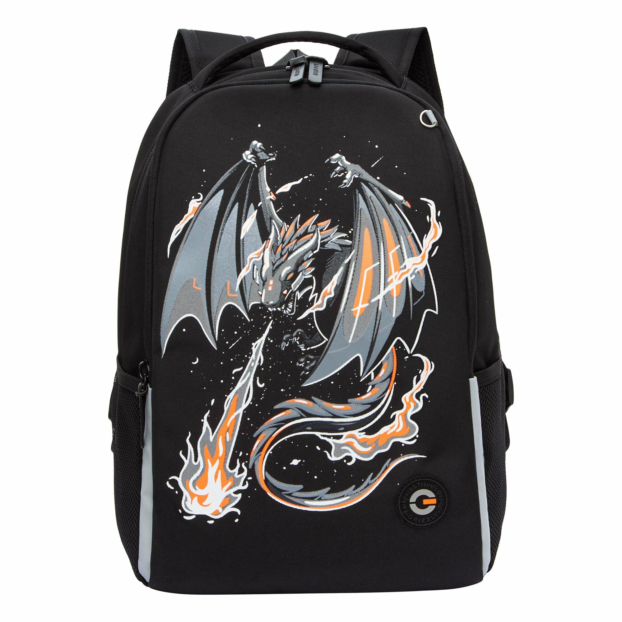 Рюкзак школьный GRIZZLY RB-354-4 с карманом для ноутбука 13", анатомической спинкой, для мальчика, черный-оранжевый
