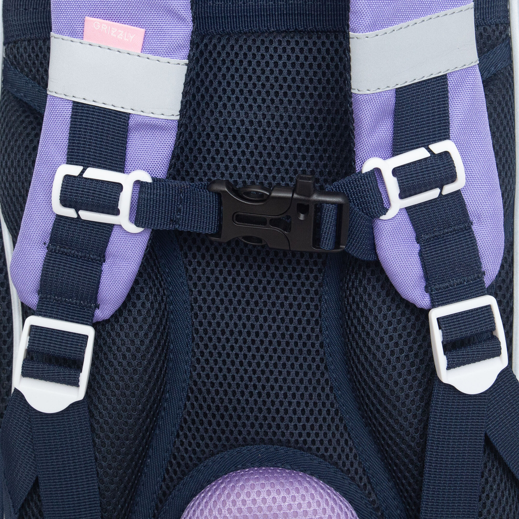 Ранец школьный GRIZZLY суперлегкий с анатомической спинкой, на ножках, с мешком для обуви, для девочки RAm-484-6/1