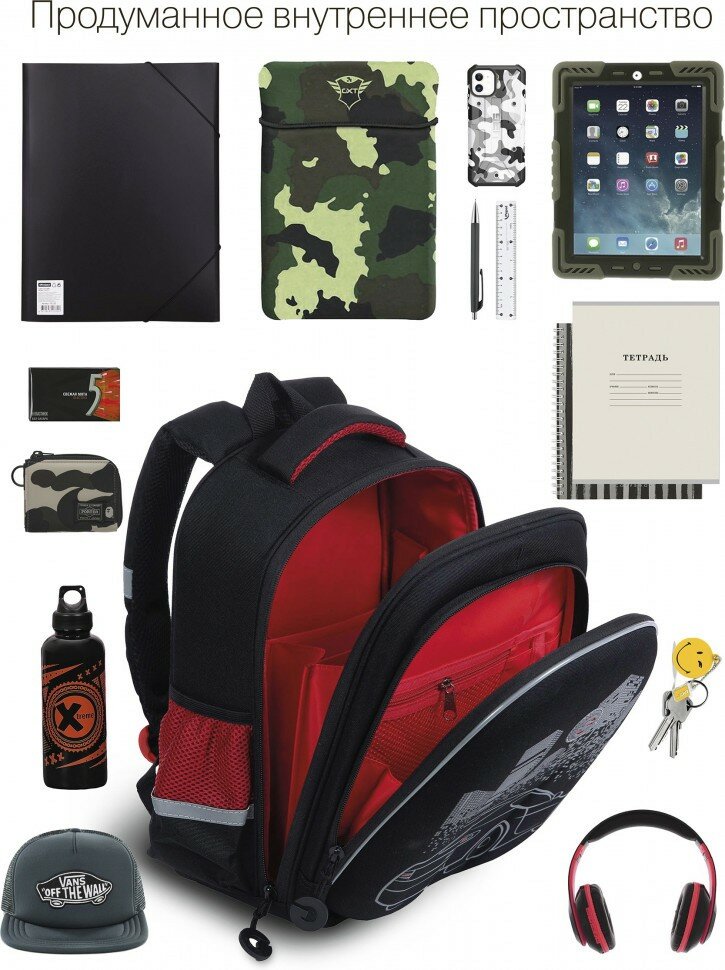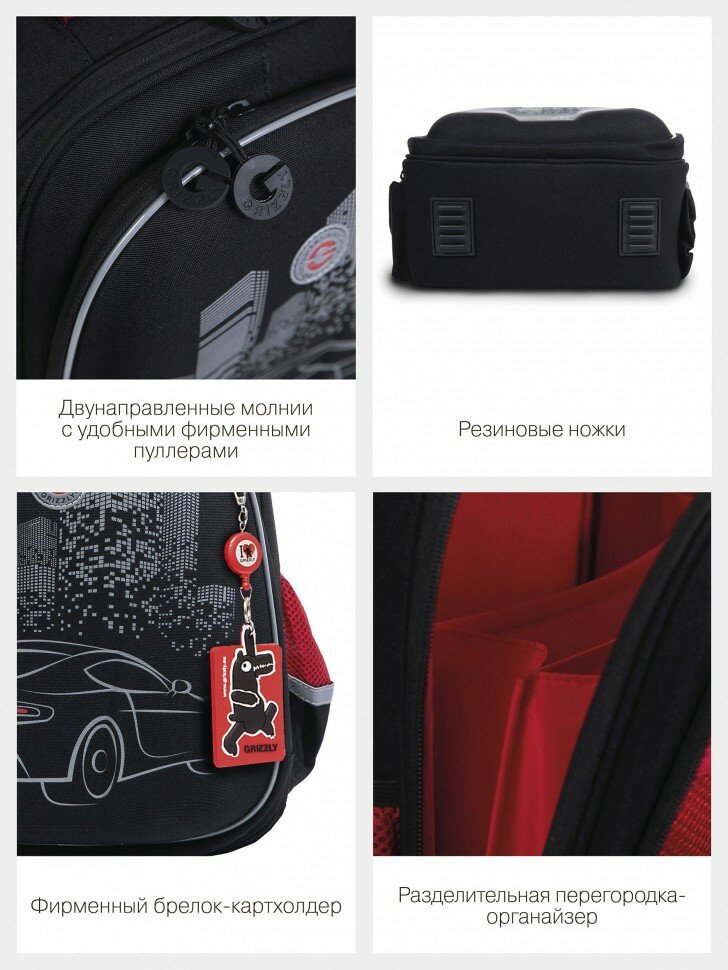 Ранец GRIZZLY анатомическая спинка, c бейджем, для мальчиков, NIGHT RACE, 36х28х20 см, RAz-287-8/1 интересное: