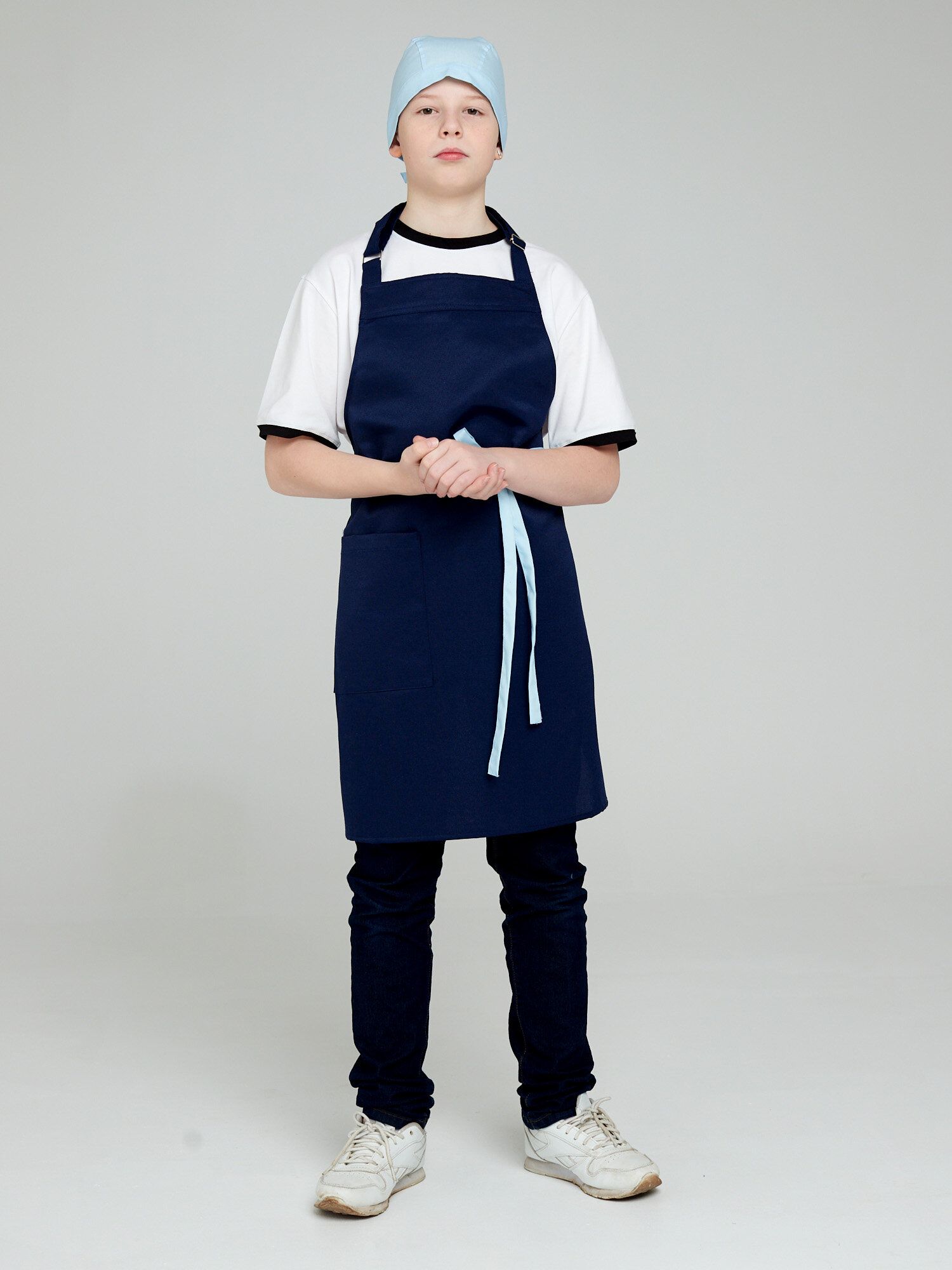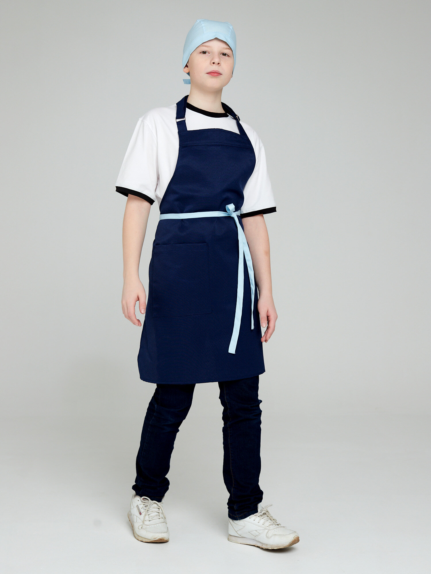 Купить Фартук школьный для уроков технологии, комплект (фартук+бандана), Kupifartuk, для уроков труда, кулинарии, тёмно-синий
