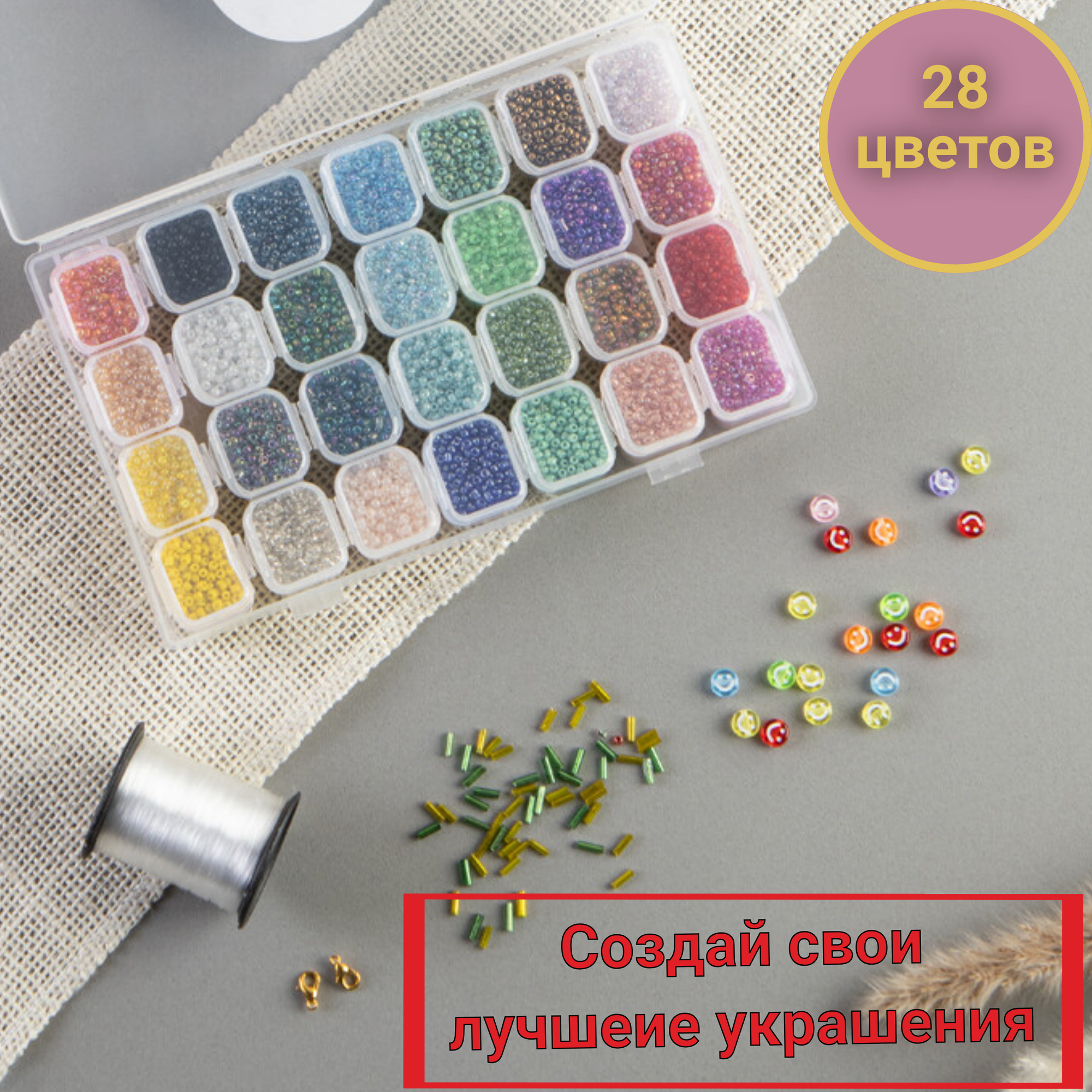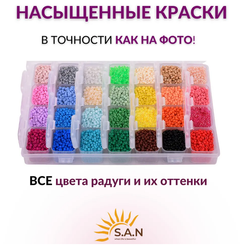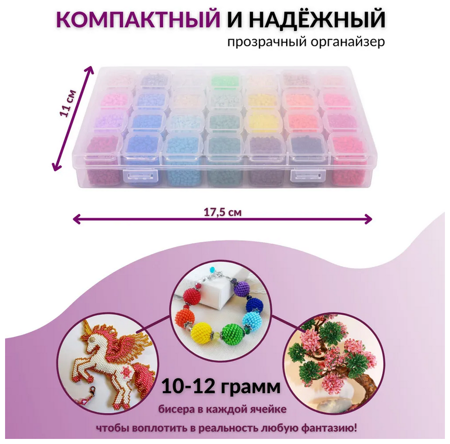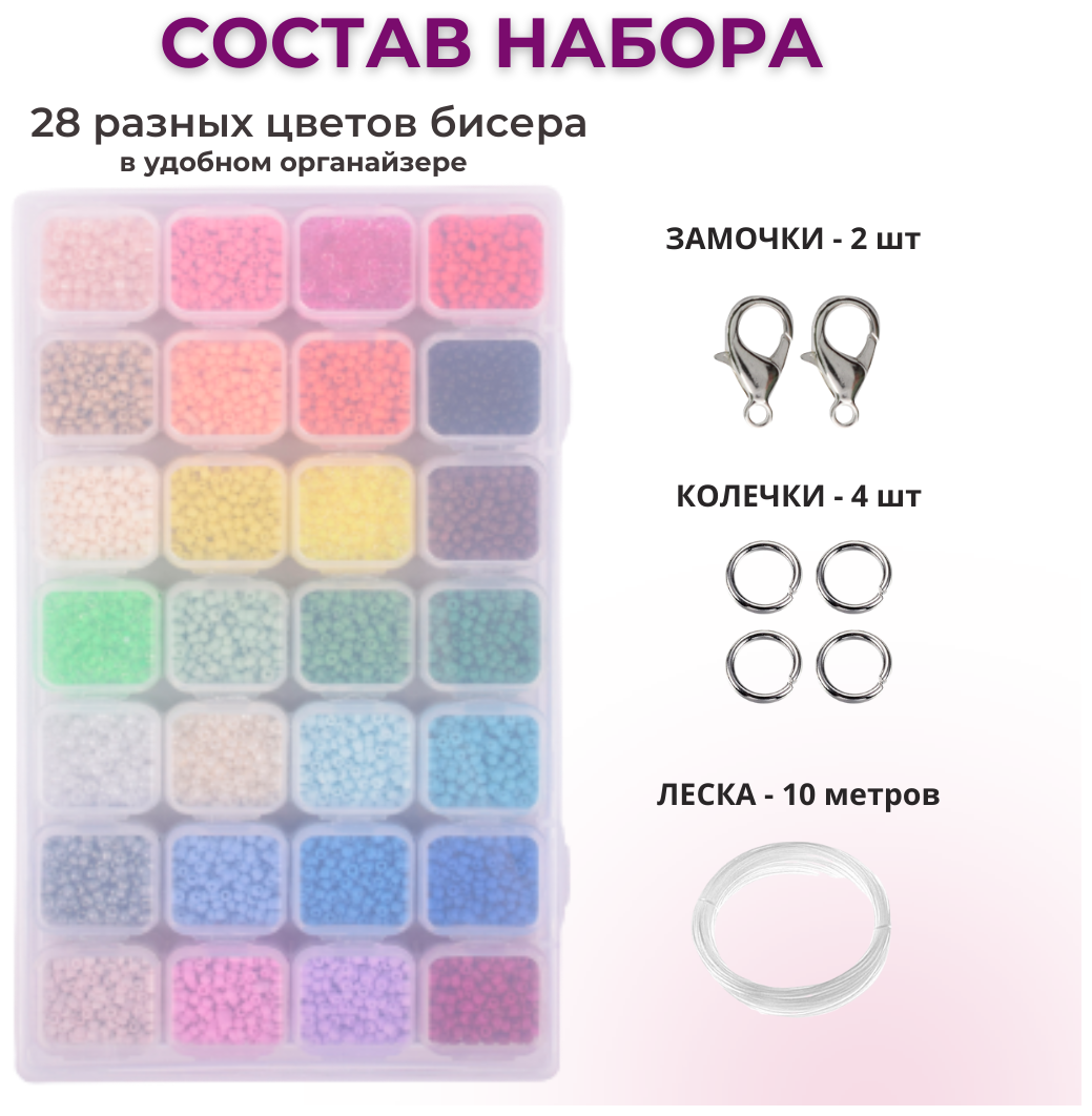 Бисер / Набор бисера для плетения рукоделия в органайзере 28 цветов, с леской и замочками интересное: