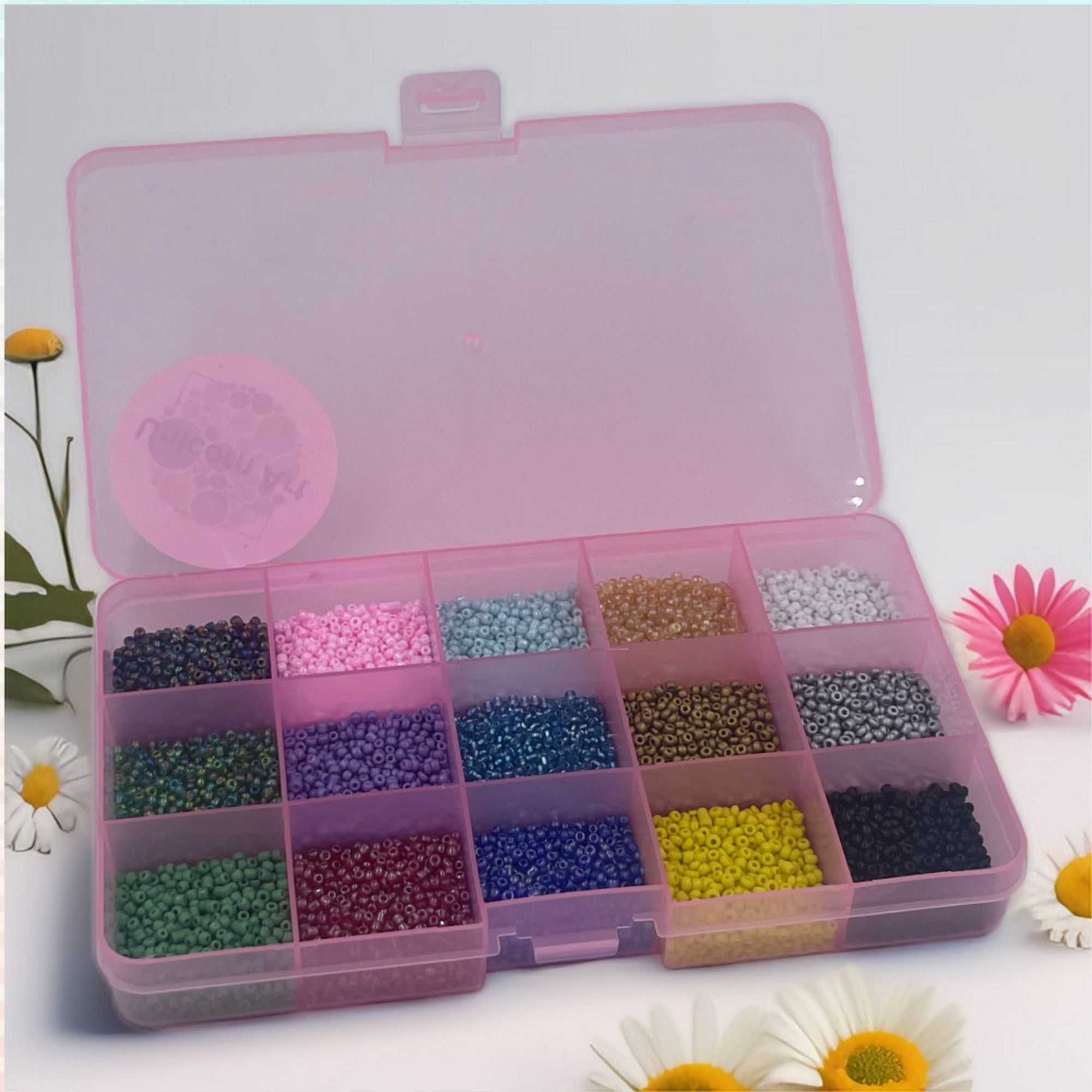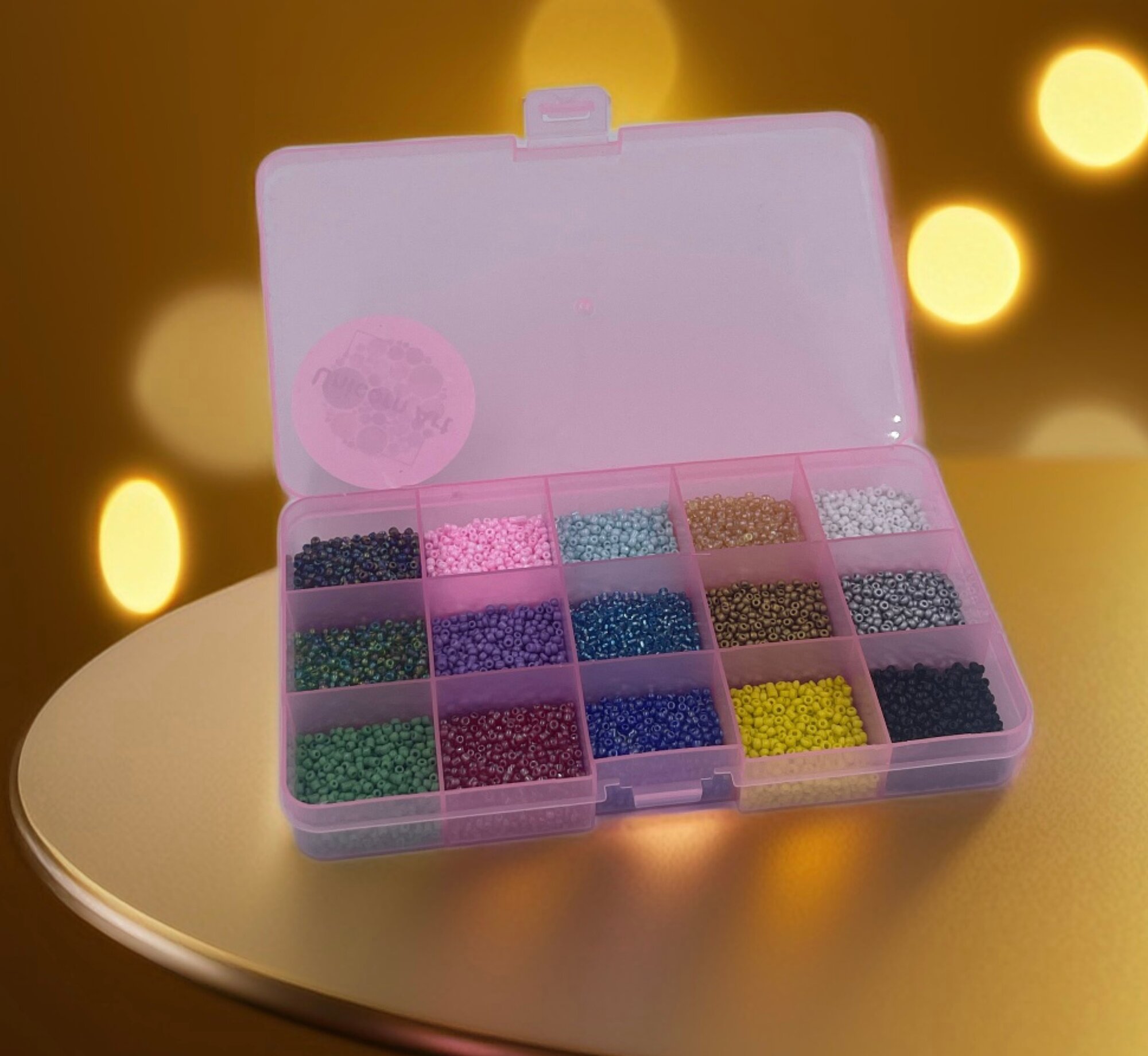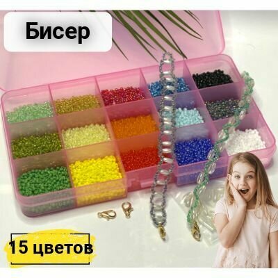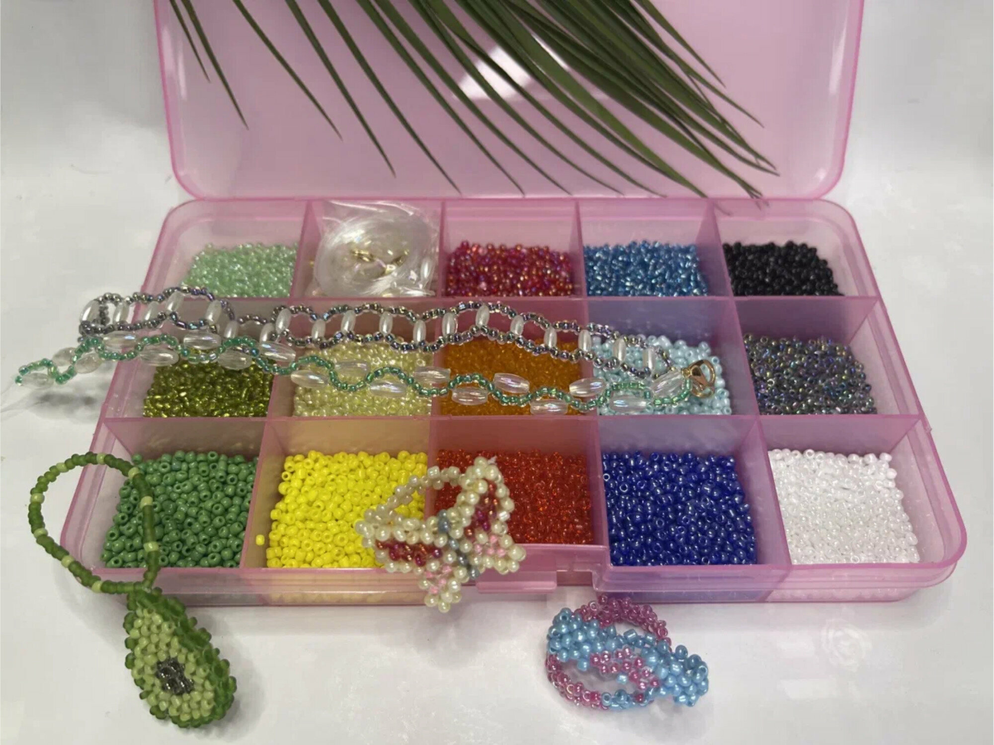 Бисер / Набор бисера для плетения рукоделия в органайзере 28 цветов, с леской и замочками