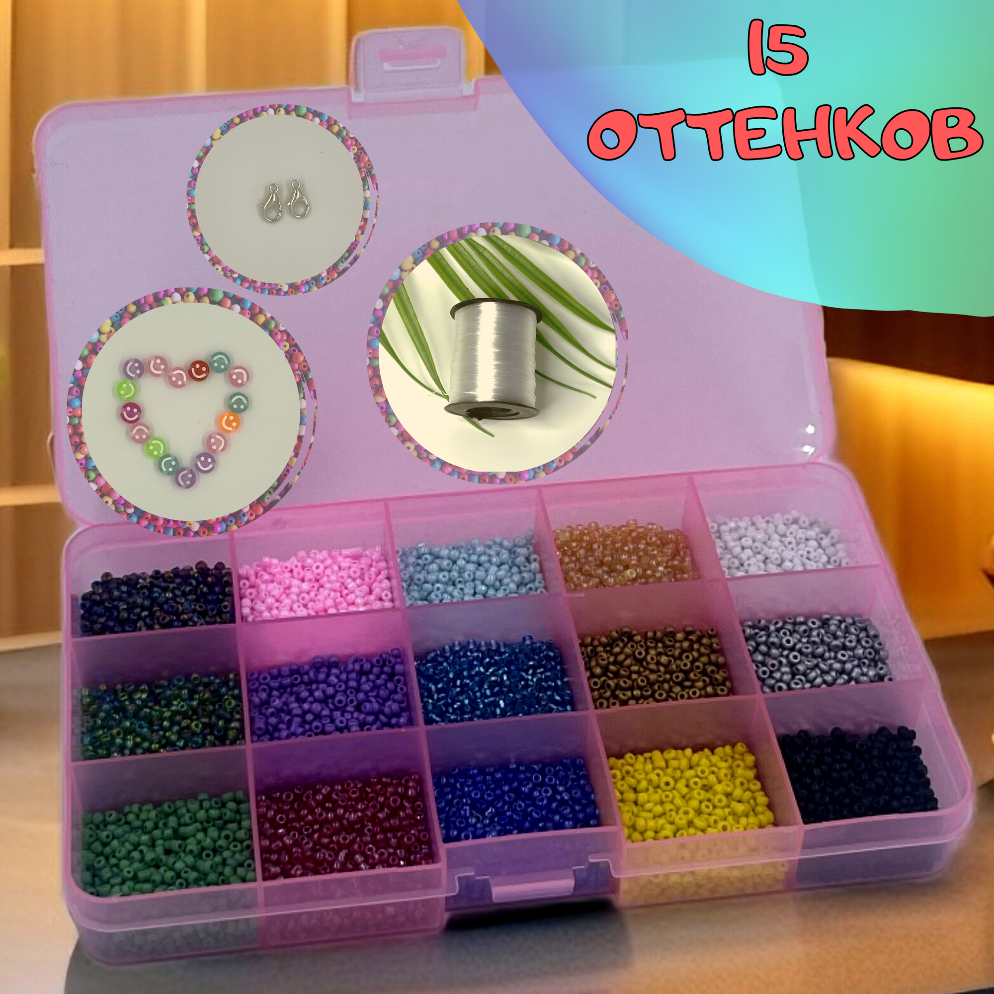 Подарочный набор бисера Zlatka для плетения, 15 цветов интересное: