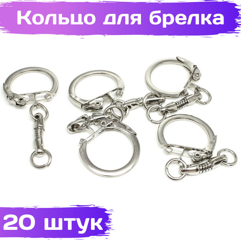 Фурнитура для брелков, заводное кольцо с цепочкой, серебристый, диаметр 25 мм, 50 шт, ВсемБусики