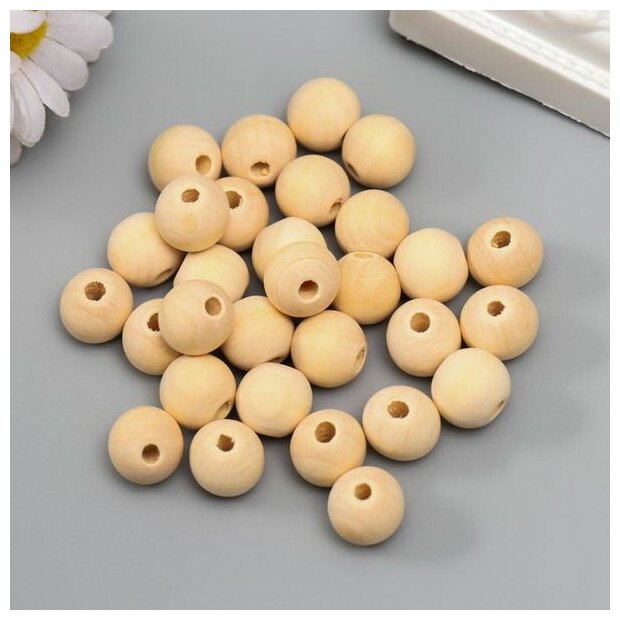 Бусины для рукоделия деревянные неокрашенные 12 мм, отверстие 3 мм, Айрис, 30 шт