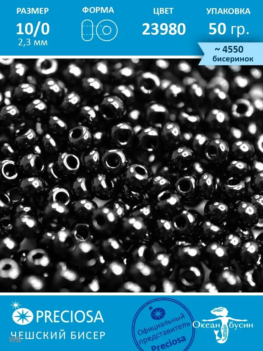 Купить Бисер чешский PRECIOSA круглый 10/0 23980 черный непрозрачный, 1 сорт, 50г