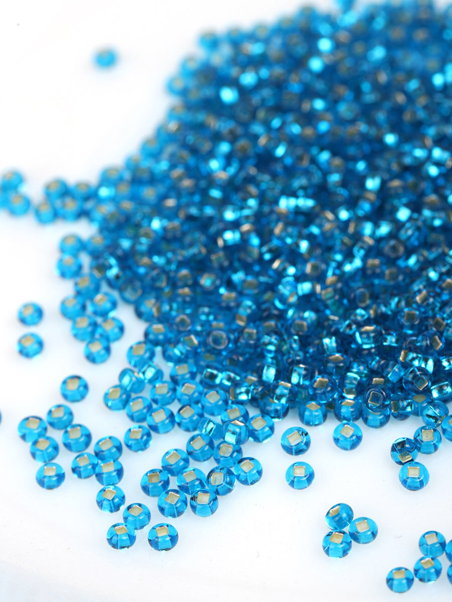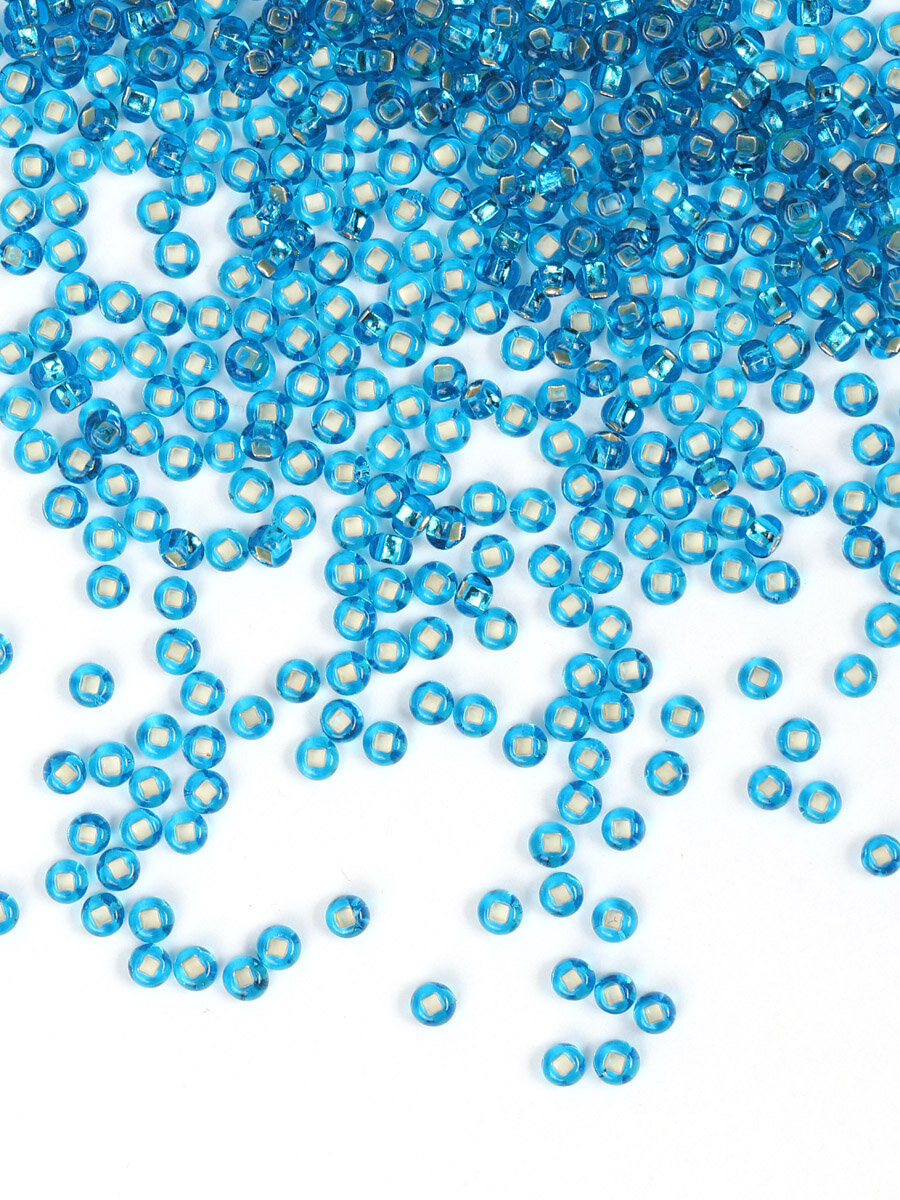 Бисер чешский PRECIOSA круглый 10/0 37050М матовый синий, серебряная линия внутри, квадратное отверстие, 2 сорт, 50г