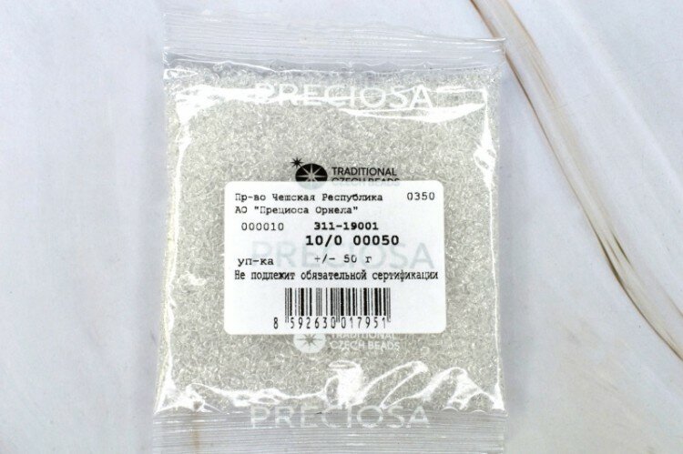 Купить Бисер чешский PRECIOSA круглый 10/0 00050 прозрачный, 1 сорт, 50г