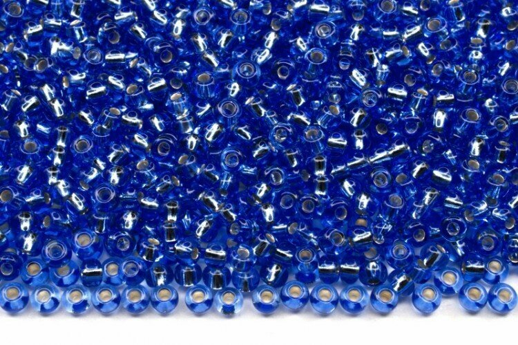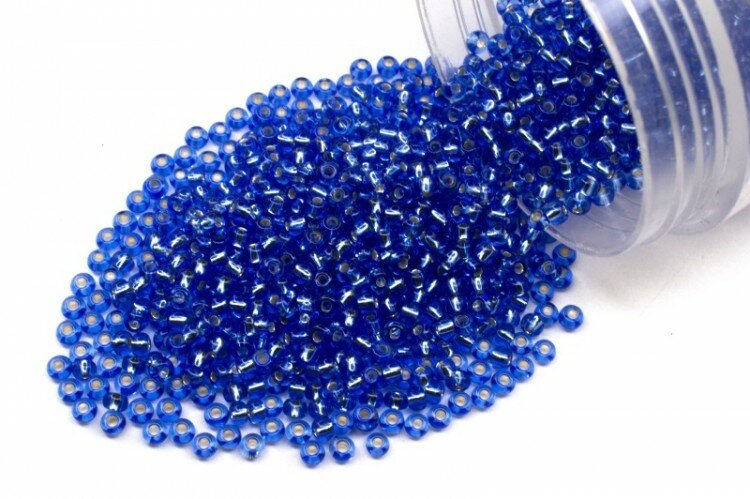 Бисер чешский PRECIOSA круглый 10/0 37050М матовый синий, серебряная линия внутри, квадратное отверстие, 2 сорт, 50г