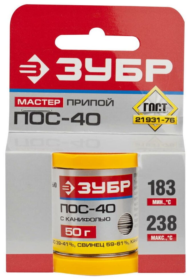 Припой ЗУБР 50гр 0,8мм трубка пос 40 55451-050-08C