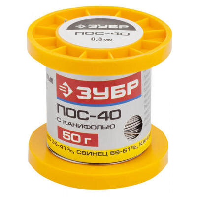 Припой Зубр, ПОС 40, трубка с канифолью, 50г, 0,8мм [55451-050-08c] 55451-050-08C . интересное: