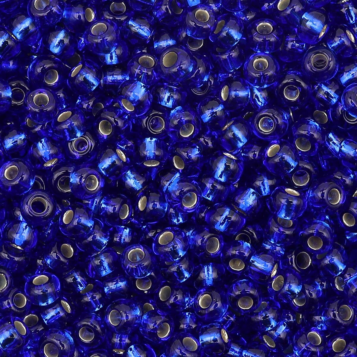 Бисер чешский PRECIOSA круглый 10/0 37050М матовый синий, серебряная линия внутри, квадратное отверстие, 2 сорт, 50г