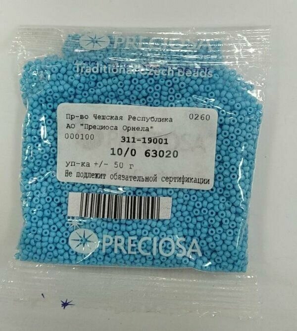 Бисер Preciosa чешский 10/0, 50 гр, цвет № 34000, голубой