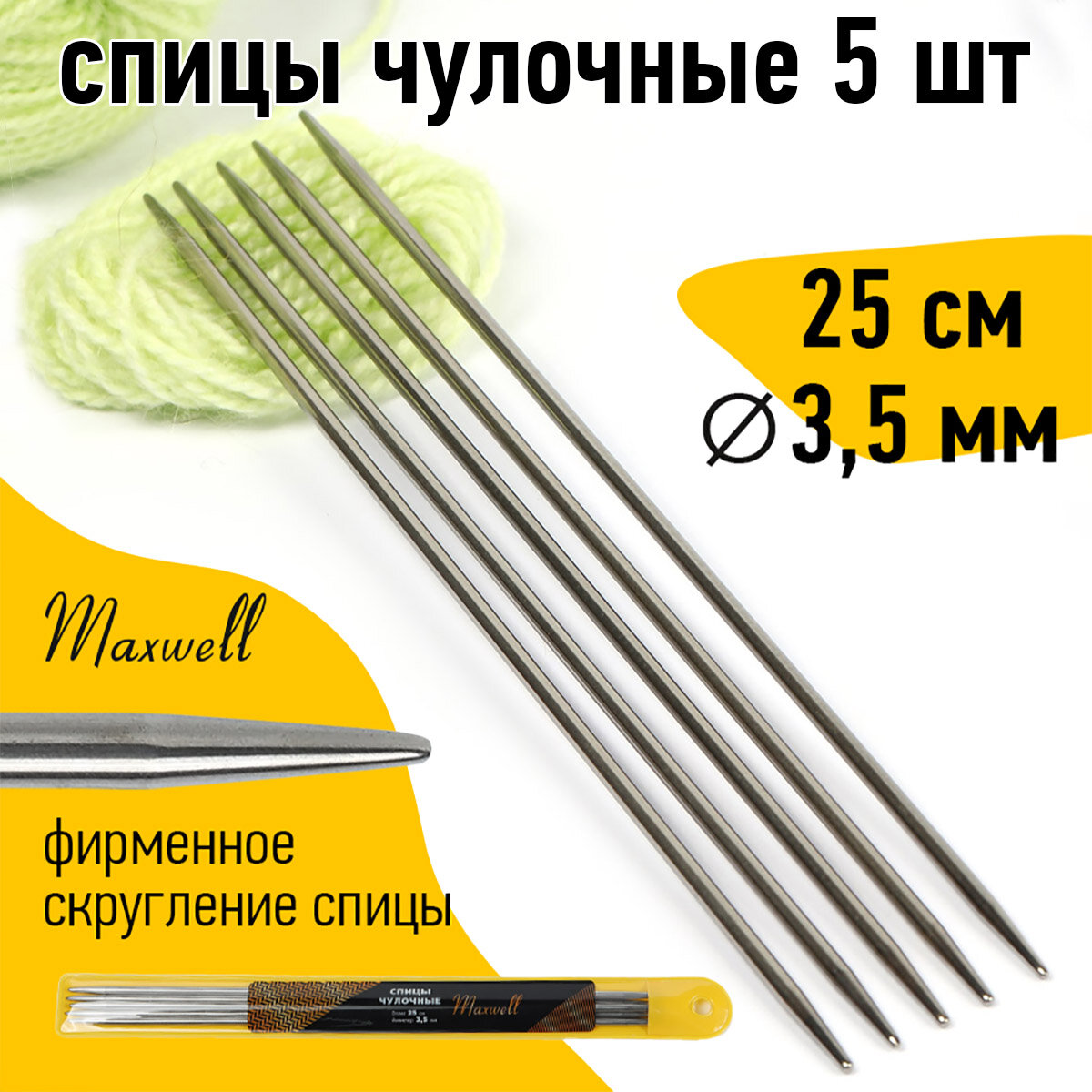 Спицы чулочные 25 см, металл, 4,5 мм, 5 шт. Maxwell