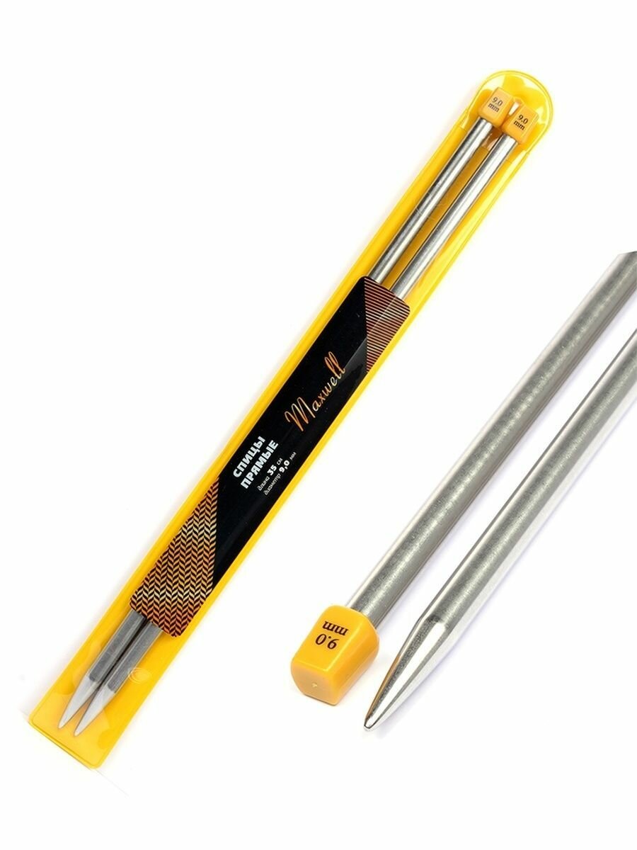 Спицы прямые 35 см, металл, 9,0 мм Maxwell