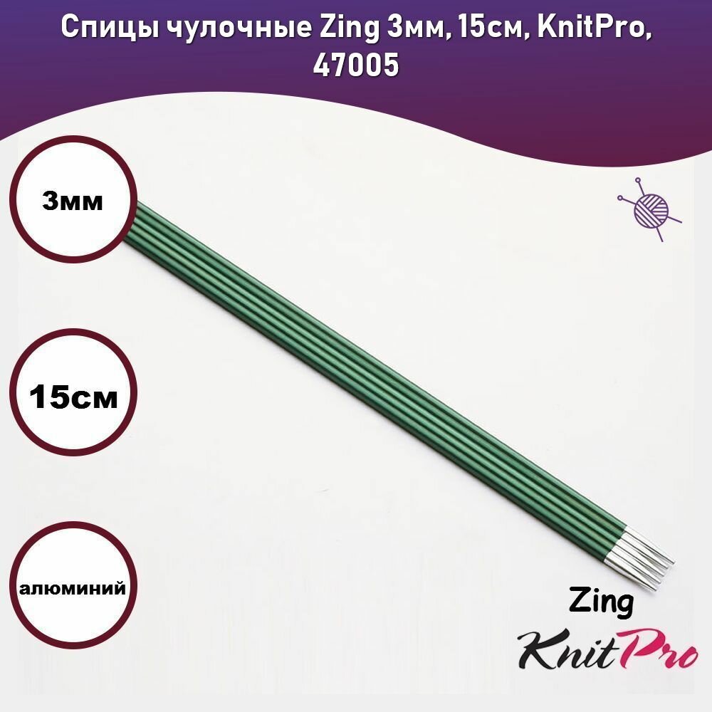 Купить Спицы чулочные Knit Pro Zing, 3 мм, 15 см, алюминий, нефритовый, 5 шт (KNPR.47005)