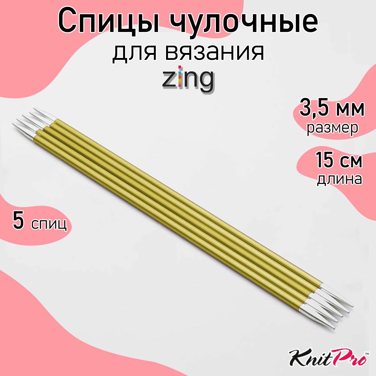 Спицы чулочные Zing 3,5мм/15см, алюминий, 5шт в упаковке, KnitPro, 47007
