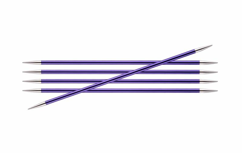 47013 Knit Pro Спицы чулочные для вязания Zing 6мм/15см, алюминий, фиолетовый бархат, 5шт