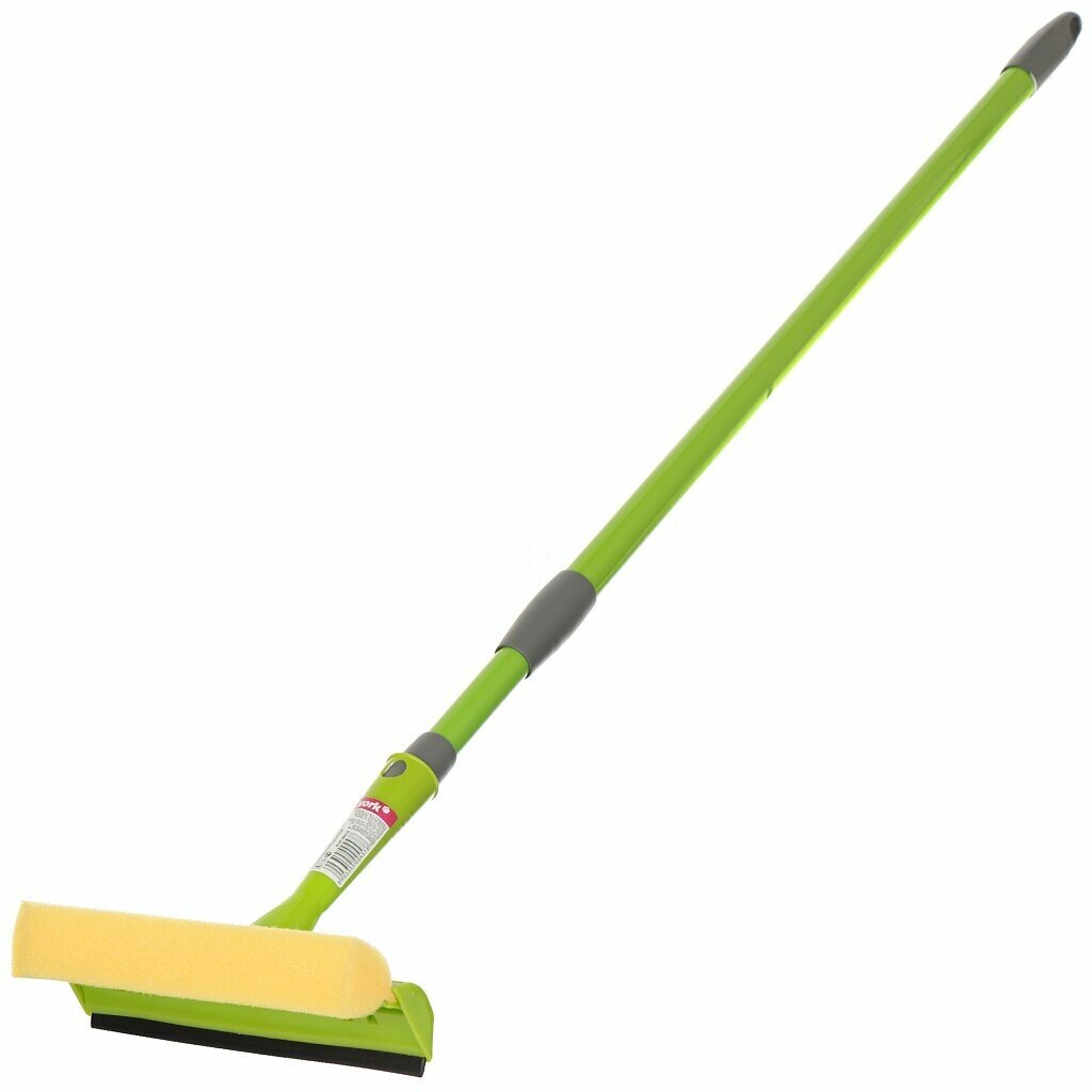 Щетка для мытья окон Hitt, резиновый скребок и губка, телескопическая ручка 96 см