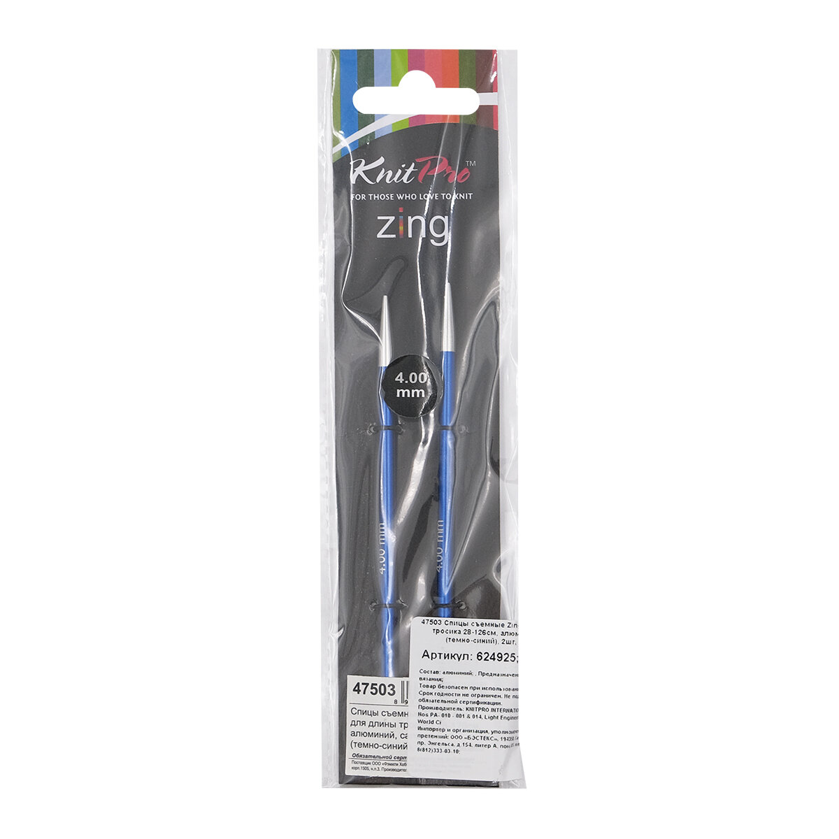 Купить Спицы съемные Knit Pro Zing, 4 мм, для длины тросика 28-126 см, алюминий, сапфир (темно-синий) 2 шт (KNPR.47503)