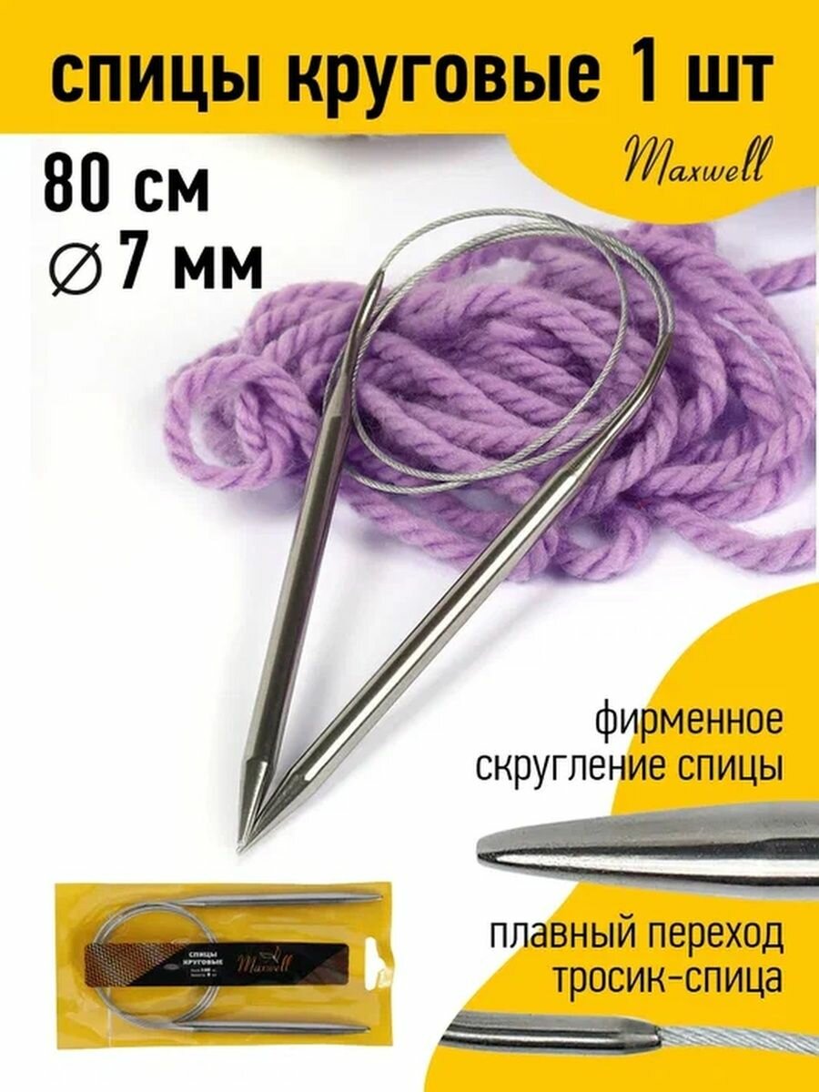Спицы для вязания круговые MAXWELL на тросиках, d7мм, 120см, 1шт