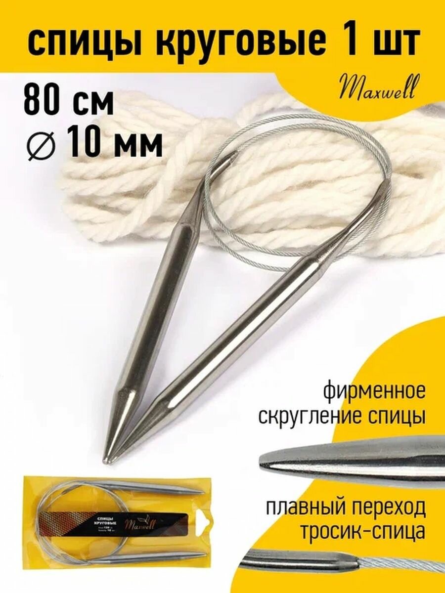 Спицы для вязания круговые MAXWELL металлические, d10,0мм, 80см, 1шт