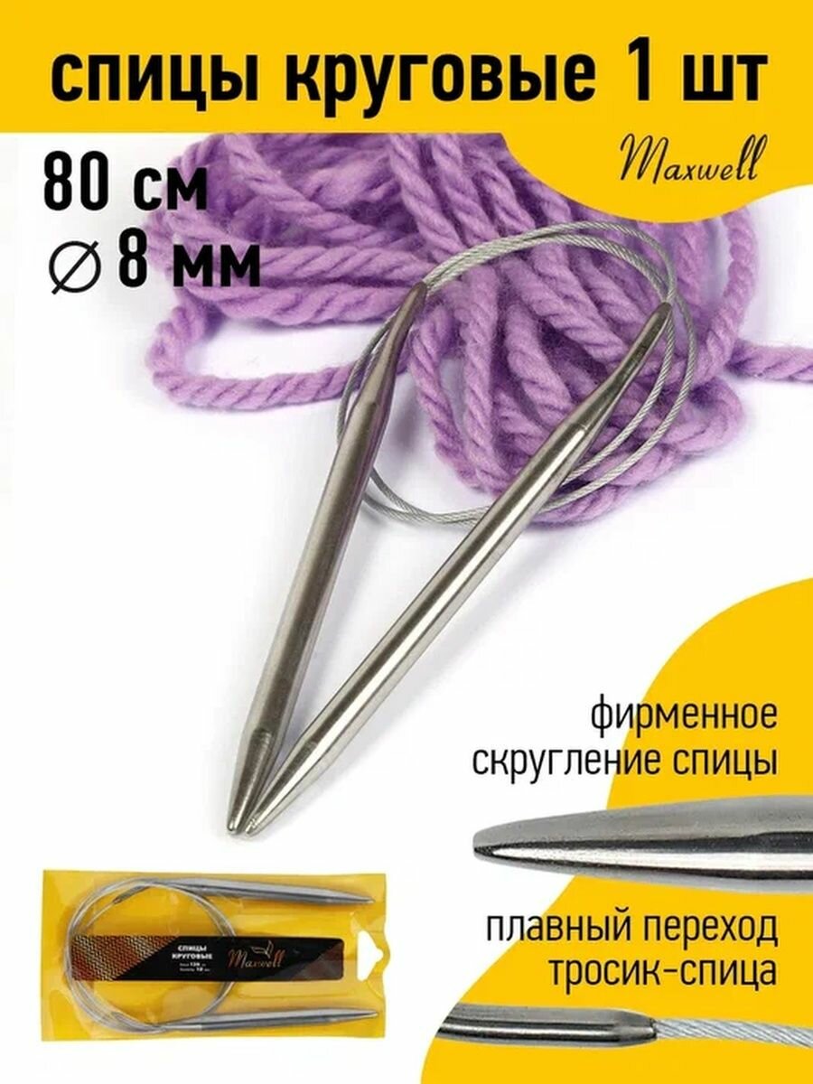 Спицы для вязания круговые MAXWELL металлические, d8,0мм, 80см, 1шт