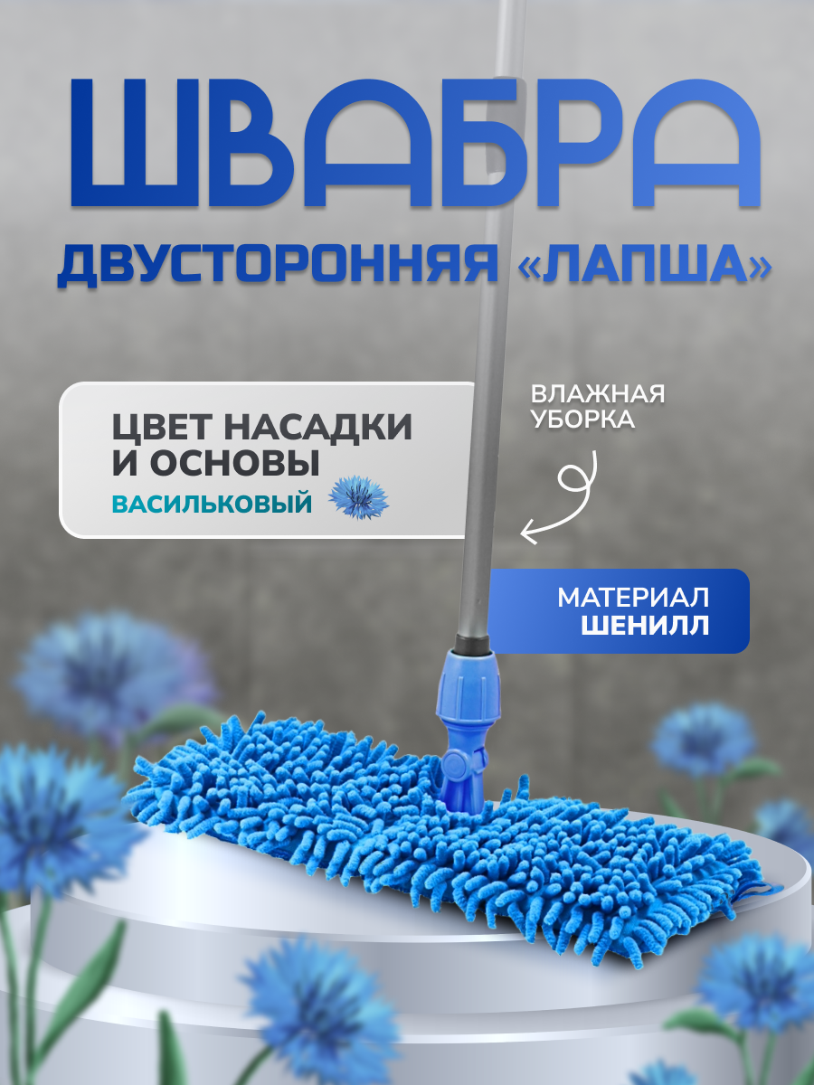 Швабра, для влажной уборки, цвет Голубой, шенилл/телескопическая ручка, In`loran, S2-L152 интересное: