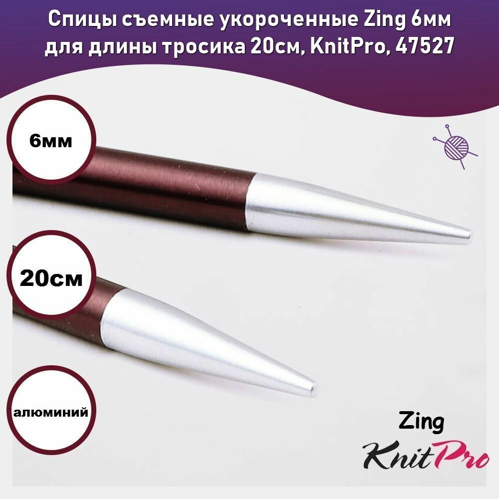 47527 Knit Pro Спицы съемные для вязания Zing 6мм для длины тросика 20см, алюминий, фиолетовый бархат, 2шт