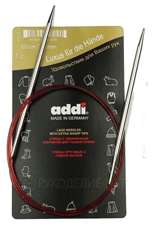Спицы Addi №4,5 - 100 см для вязания круговые с удлиненным кончиком