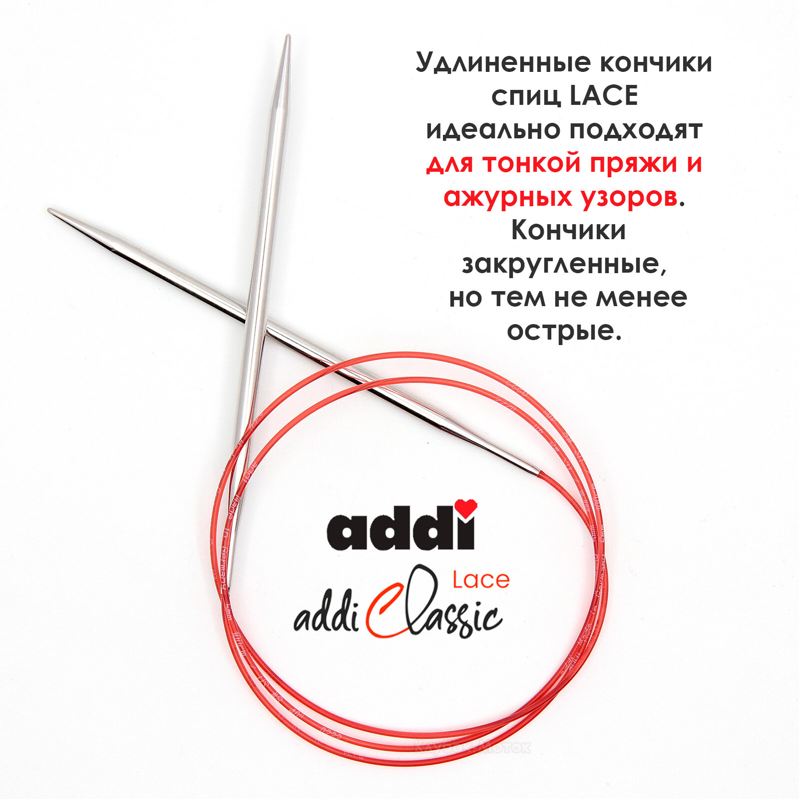 Спицы круговые удлиненным кончиком для вязания AddiClassic Lace 100 см 4.50 мм, (775-7)