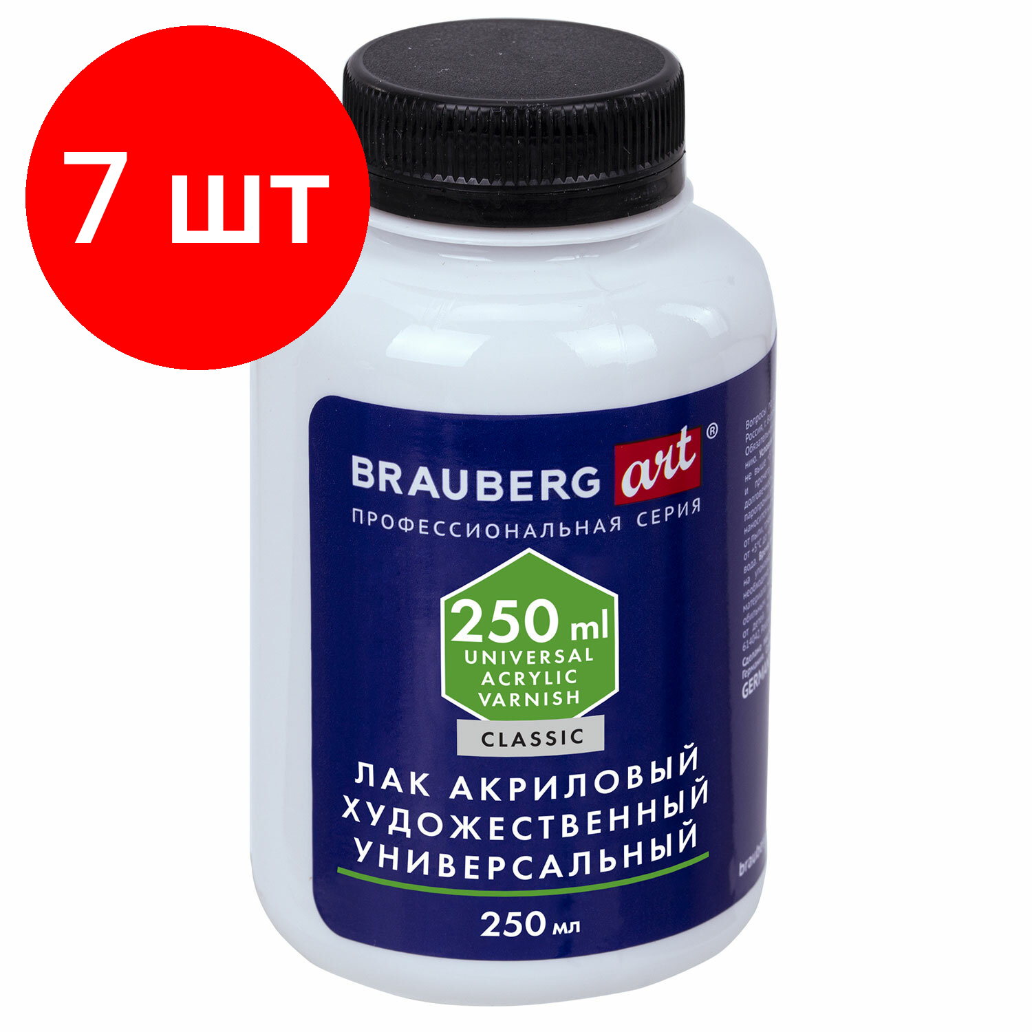 Купить Комплект 7 шт, Лак акриловый матовый художественный, в бутылке, 250 мл, BRAUBERG ART CLASSIC, 192351